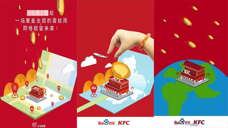 国庆长假前夕,基于百度地图的强大定位功能,肯德基宣布与百度地图携手,推出O2O出行新模式。9月28日起,肯德基将全国4800家线下门店接入百度地图平台,打造全景的“肯德基虚拟餐厅”。同时,肯德基还在这4800多家餐厅备足了100万枚葡式蛋挞,期待与餐厅周边3公里内的消费者甜蜜“偶遇”。