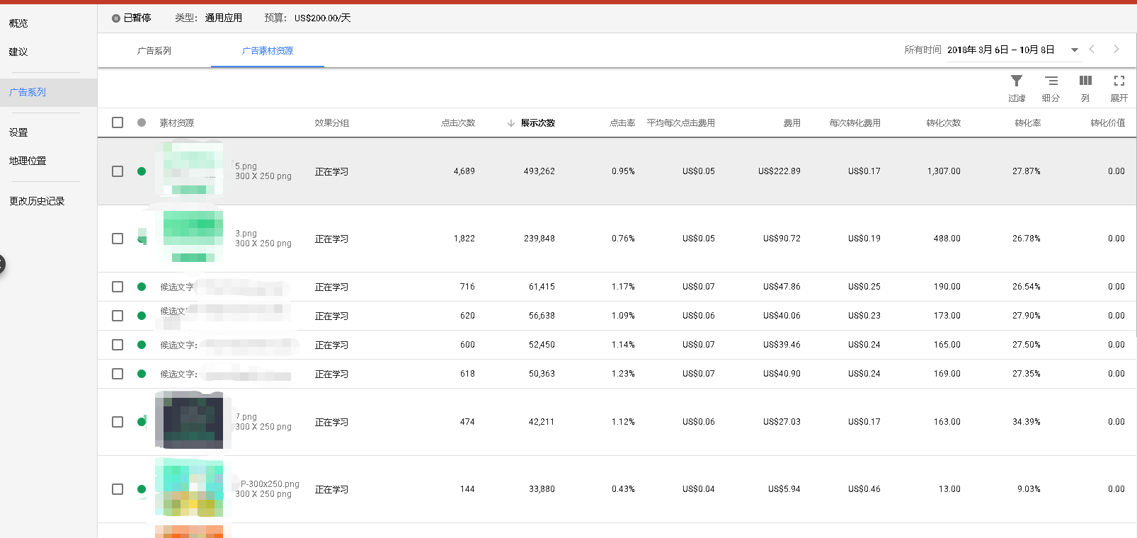 举个栗子,在每月的月初、月中、月末谷歌平台会给你广告组中不同类型的素材不同的流量倾斜,月初时文字流量大,月中时图片流量大,月末时流量一般等等情况,这点很有意思,具体的要根据各自的数据表现来分析。