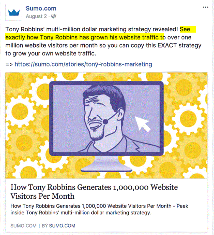 因此这一营销方案的目标是吸引用户点击阅读,了解SUMO,意识到也许SUMO可以解决自己的问题。