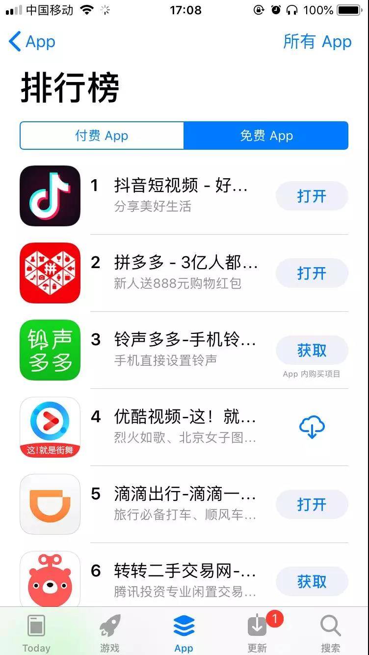 抖音从2016年9月份低调上线再到2017年底的高调推广,结合2018春节营销攻势再利用一线明星资源站台。终于在2018年的春天迎来了井喷期,在App store上免费排行榜上稳居榜首。
