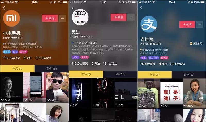 目前抖音上企业标杆案例有:小米手机、奥迪、海底捞、adidas neo等品牌。