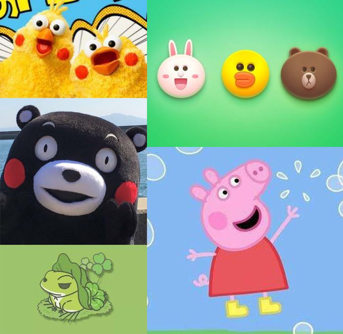 另外,还有一个趋势是:受欢迎的卡通形象会出现去性别化、低幼化的特征。从line中的布朗熊中性表情开始,到熊本熊,再到鹦鹉兄弟,在到小猪佩奇。光看外表其实难以辨别它们的性别,这样受众对于卡通形象就不会有太多性别上的选择偏好性。