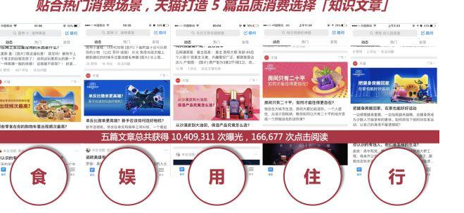 批量的深度文章,用专业的知识导购,唤起消费者的心智共鸣,影响受众的消费决策,结合深度投放的站内广告位曝光,帮助天猫抢占双十一流量。