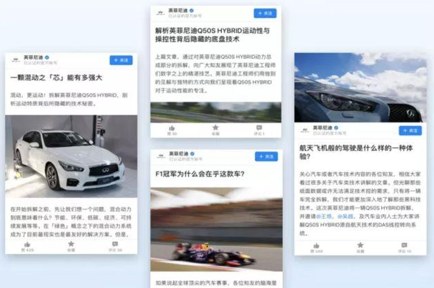 知识营销的魅力还不止于此,Live直播中产出的优质内容又被汇总为原生文章二次传播,专业的深度解析落成文字,进一步强化用户对英菲尼迪在技术领域不断创新的认知。