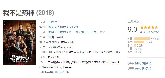 以最近大火的电影我不是某神来看,自来水宣传的点,良心电影、现实主义题材、有意义、年度好电影等等,这些点集合到一起,都指向一个词:好电影。在国内垃圾片成堆的当下,一个好看的电影,就会有种会当凌绝顶的感觉,迎接它的自然就是超高的票房了。