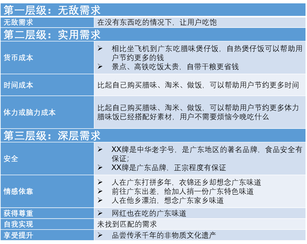 这是我自己归纳的需求理论,一共分为三层:无敌需求、实用需求和深层需求。