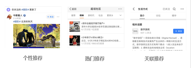 比如微博话题页面的内容,也可以展现在信息流,同时在搜索、个人主页都能看到,形成完整的闭环。