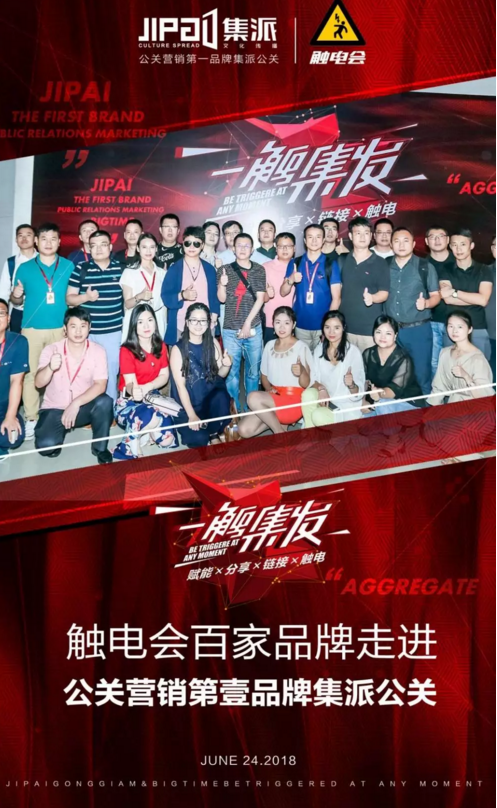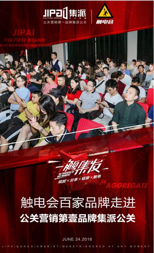 北京时间2018年6月24日,由上海集派文化传播有限公司与触电会联合主办的“一触集发”,触电会百家品牌走进公关营销第一品牌集派公关,走进微商巨头时代的活动在集派公关及大时代大厦举行。此次活动旨在为各大微商提供有价值、实用强的战略策略,并给广大商家一个学习交流的平台。活动现场气氛火爆,此次活动到场嘉宾人数逾200人之多,各大品牌企业齐聚共同探讨共同进步。在此次活动中,集派公关将与触电会正式达成战略合作,开启商业发展的新篇章。